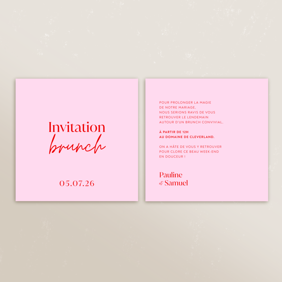 Vous souhaitez glisser des infos à part pour certains invités ? Dîner, brunch du lendemain, cérémonie civile… Ces petits cartons assortis à votre faire-part sont parfaits pour tout dire, sans tout mélanger.