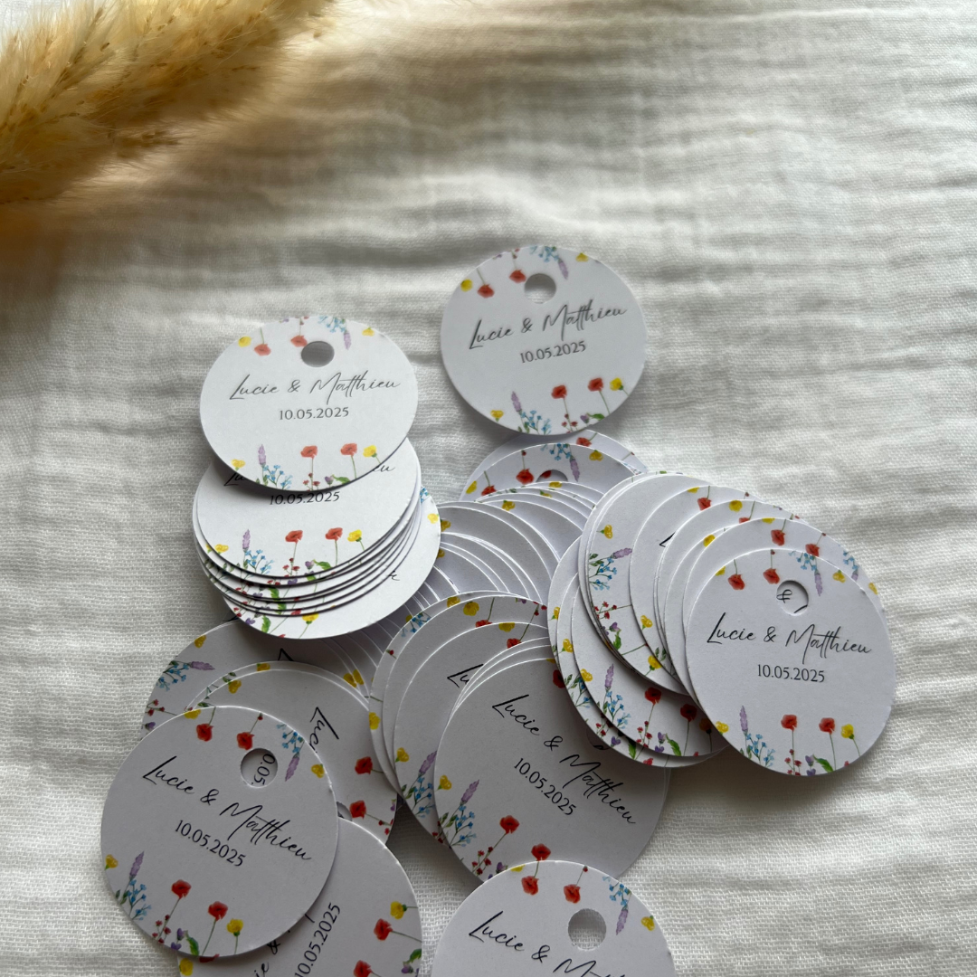 Jolies étiquettes rondes perforées pour les cadeaux invités, les serviettes... ✨