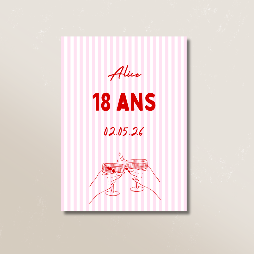 Annoncez votre anniversaire avec élégance grâce à notre faire-part au format 10,5 x 14,8 cm (A6), idéal pour vos envois postaux.