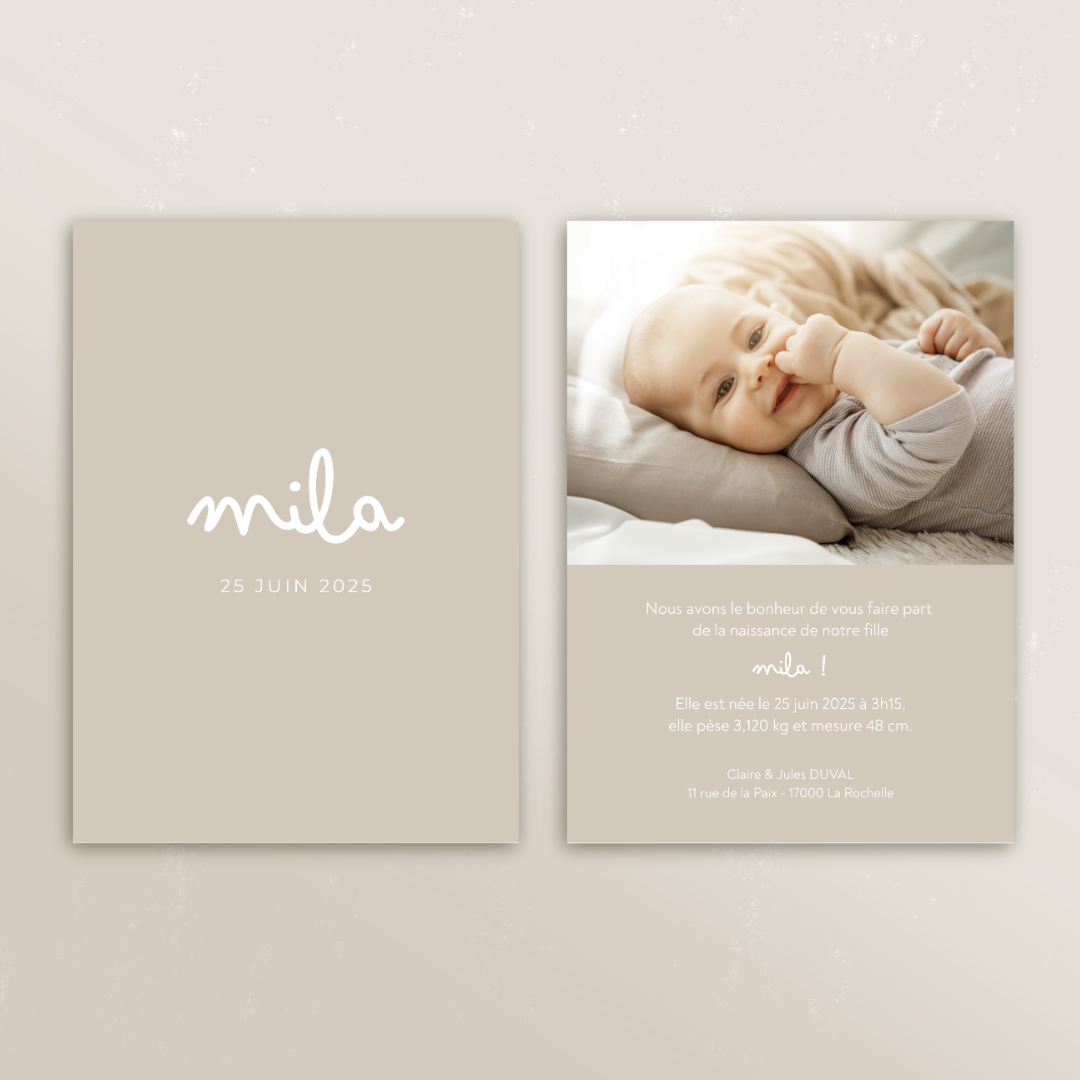Envie d’un faire-part sur mesure ? Rdv dans la section « Sur mesure » pour nous confier votre projet unique.