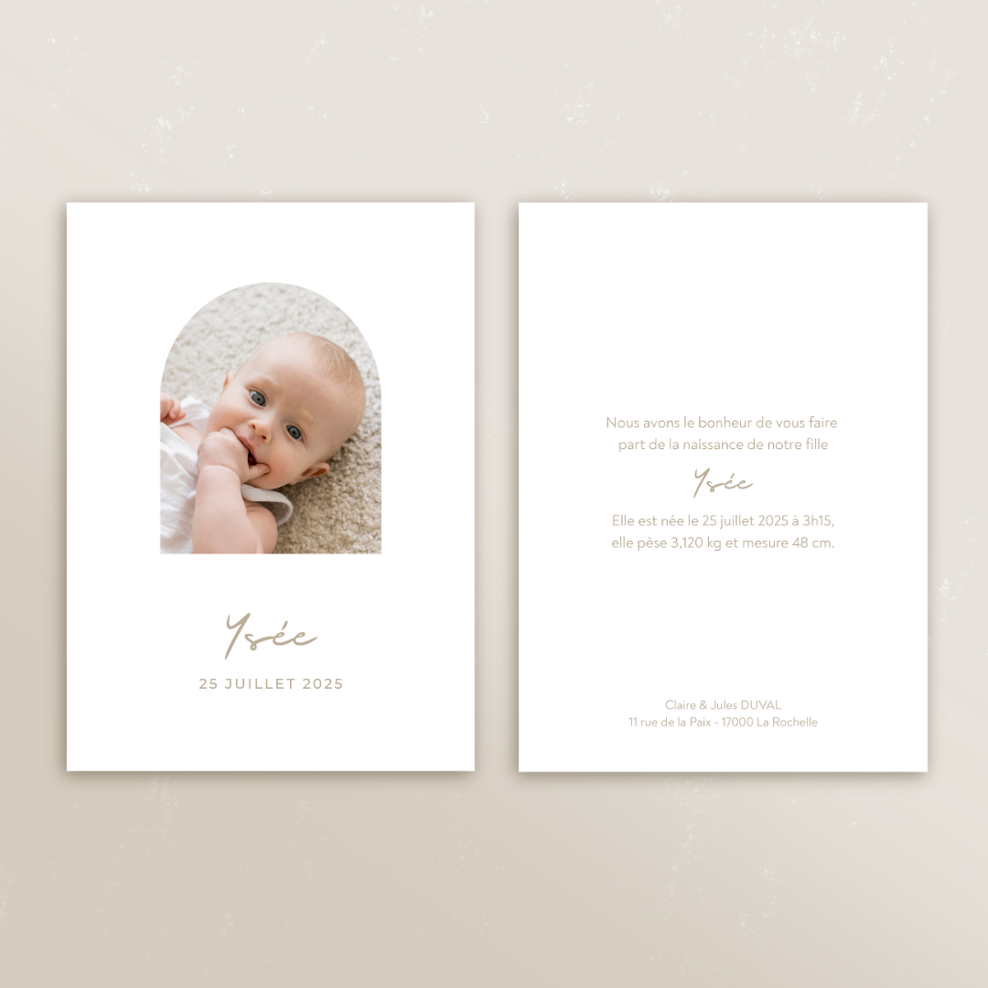 Annoncez cette arrivée avec élégance grâce à notre faire-part au format 10,5 x 14,8 cm (A6), idéal pour vos envois postaux.