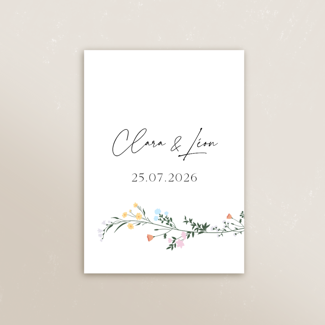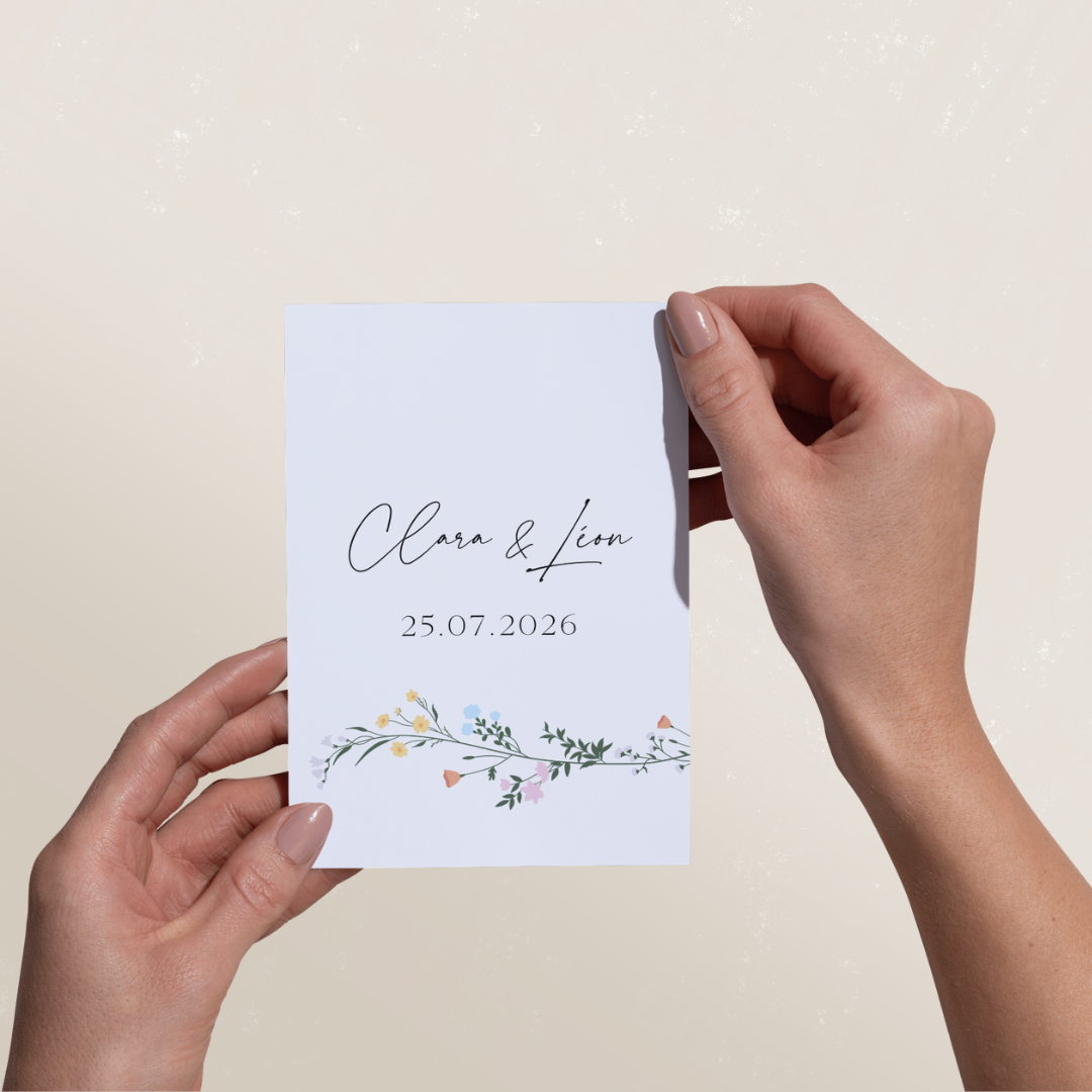 Annoncez votre événement avec élégance grâce à notre faire-part au format 10,5 x 14,8 cm (A6), idéal pour vos envois postaux.