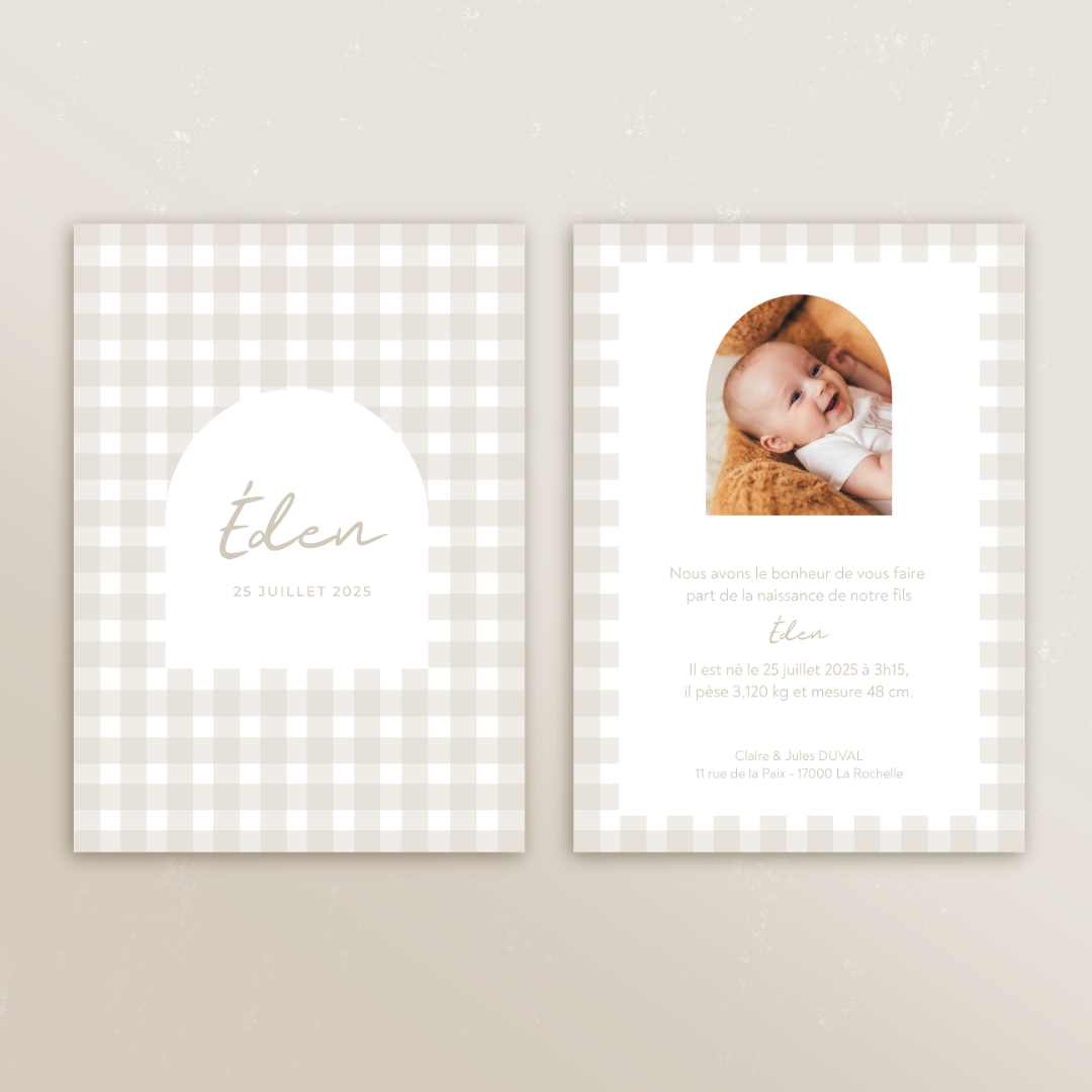 Annoncez cette arrivée avec élégance grâce à notre faire-part au format 10,5 x 14,8 cm (A6), idéal pour vos envois postaux.