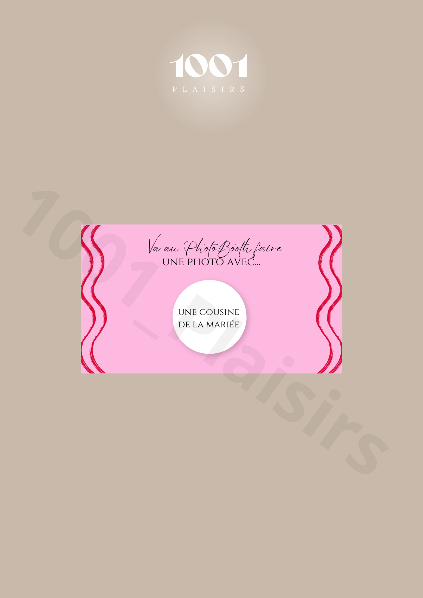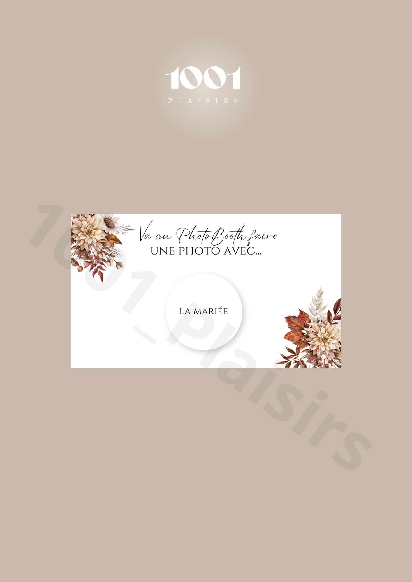 Le principe est simple : vos convives bénéficieront tous d'une carte (à piocher, à chaque place, distribution...)  et découvriront la personne avec qui ils devront se rendre au PhotoBooth pour faire une photo.